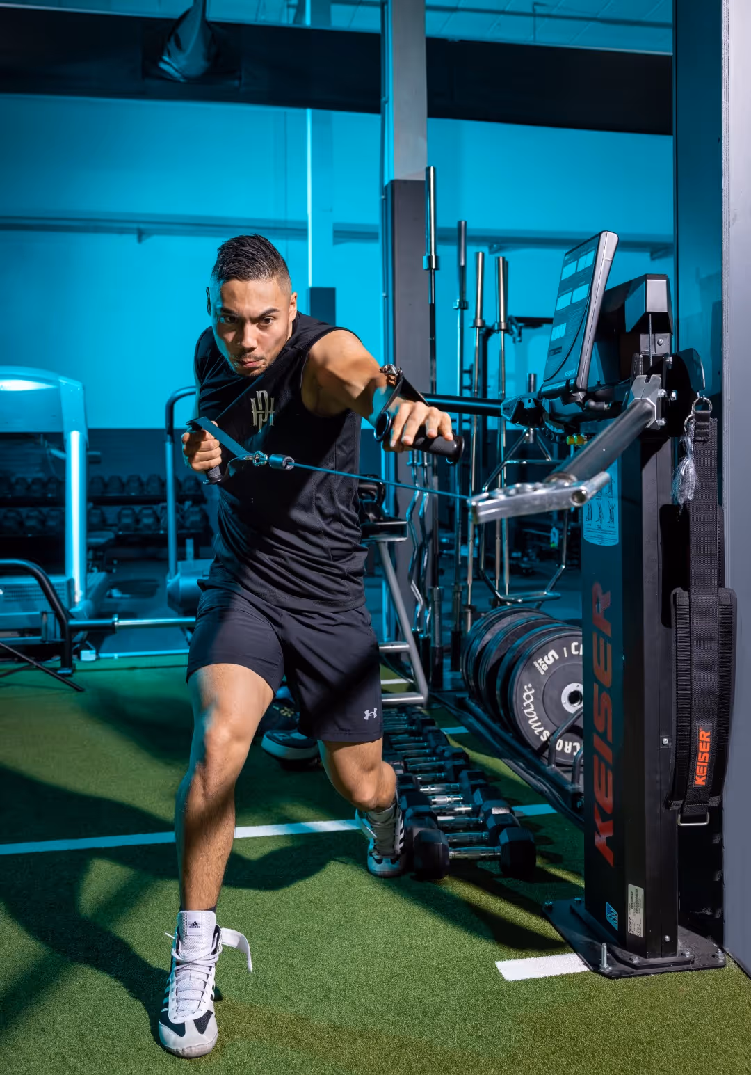 - Racks, barbells, plates and free weights