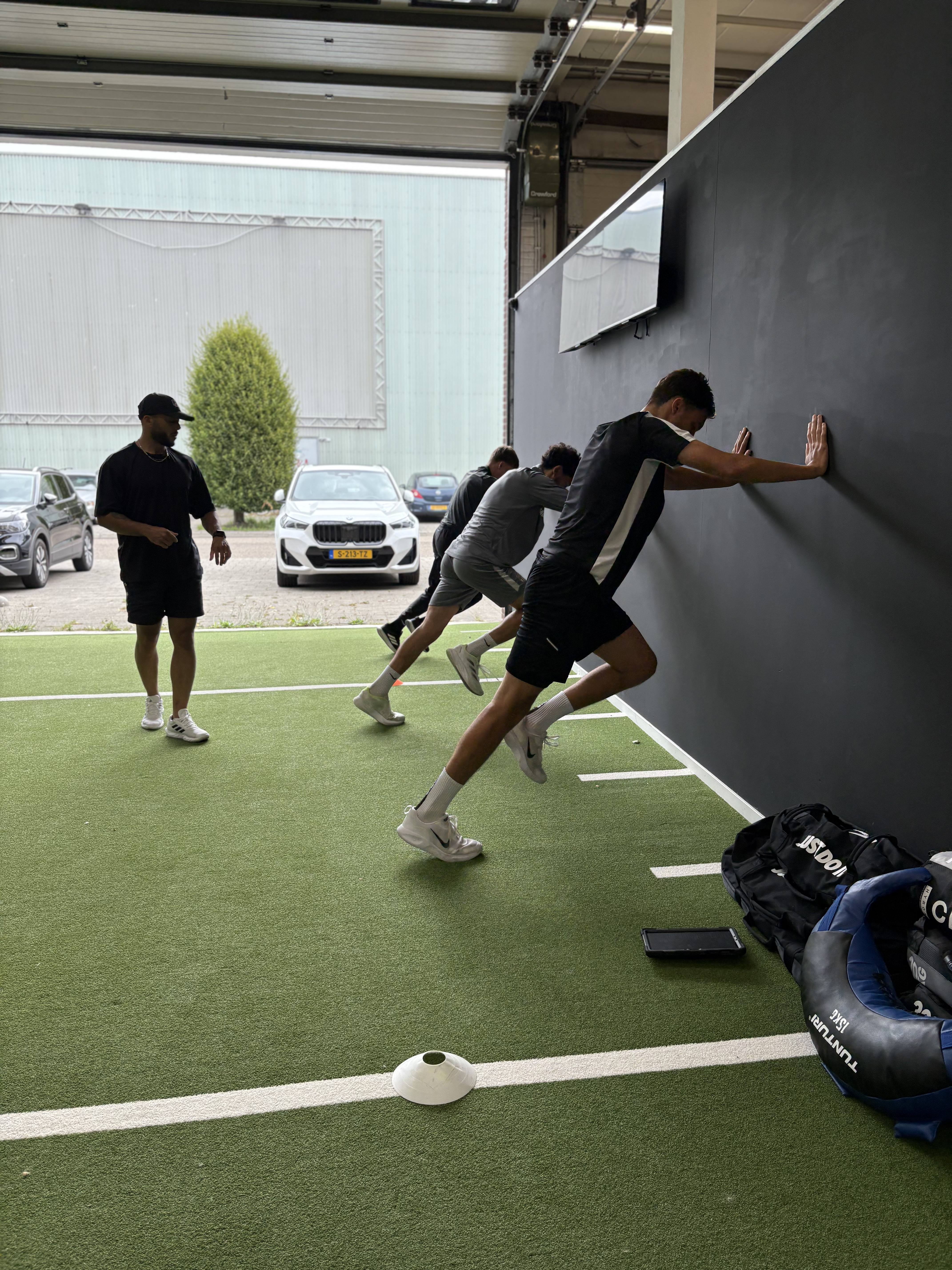 2 trainingen per week, telkens circa 60 minuten, in een groep van max. 8 sporters. Elke sessie is opgebouwd rond de testresultaten van jouw kind — kracht, snelheid, explosiviteit en stabiliteit.